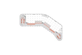 Nombreuses sont les questions posées par les bâtiments industriels contemporains alors que leur retour en ville est plébiscité par un contexte sanitaire et économique chaque jour plus prégnant. Leur masse critique interpelle la question de leur insertion dans le paysage. L’incurvation du bâtiment épouse la voie ferrée, suit la courbure de la Seine et limite l’impact visuel du bâtiment depuis la rive d’en face. Des lames miroirs accompagnent cette inflexion du bâtiment pour construire un effet cinétique par le reflet morcelé et mouvant du grand paysage. La relative instabilité des usages que le bâtiment héberge et leur rapide évolution interpelle sa capacité de garantir une réversibilité totale des plateaux. Ainsi le bâtiment se conçoit comme une vaste étagère subdivisible, un exosquelette extrêmement rationnel et finement sculpté dont on peut assurer la mutation en larges plateaux indépendants pour affronter n’importe quelle transformation.