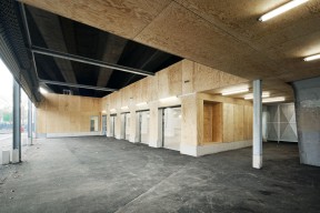 Côté Pantin, les véhicules sont mis en scène. Ainsi le piéton peut-il apercevoir l’arrivée et le départ des marchandises. En passant sous le pont du périphérique, il longera la cour des triporteurs. Côté Paris, au droit de l’arrêt de bus, une vitrine confère au bâtiment une transparence et ouvre une vue sur le ballet des marchandises.